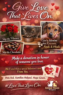 Animal House Project, a 501 c3 organization and our mission is to offer comprehensive support to vulnerable animals. This includes rescuing, adopting, and facilitating access to veterinary care and food. Through dedicated efforts, innovative solutions and strategic partnerships, we are shaping a future where every companion animal finds a nurturing home free from mistreatment and hunger and receives the devoted care they deserve.