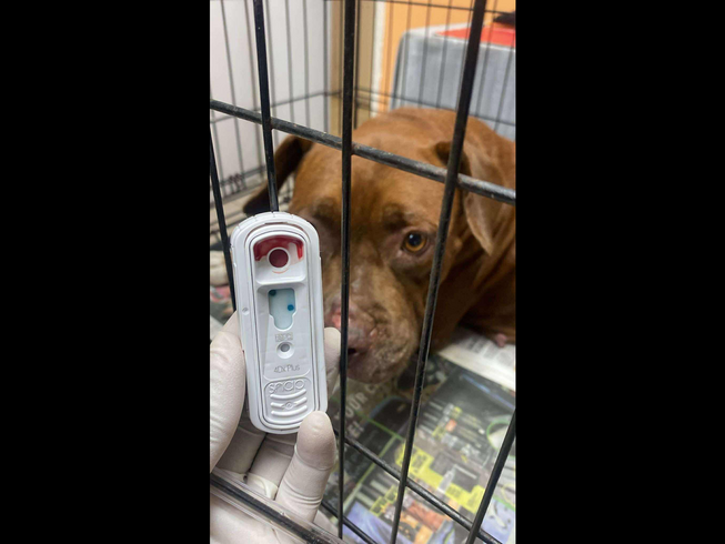 The entire night she choked with a bad cough, without even a moment of peace. This morning, I rushed her to the clinic. Her gums were almost blue from oxygen deprivation, running a high fever and the vet said her lungs were totally inflamed. She also tested a high positive for Heartworm.