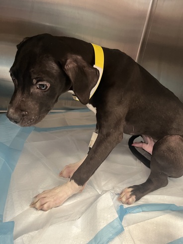 We took Loki in immediately. X-rays confirmed a fractured leg from abuse.