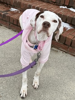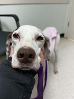 This sweet girl has had a really rough start, but she's still holding onto hope. With today being Valentine's Day, there's no better time to pour some love on her. Despite everything she's been through, Rosé is a gentle, affectionate soul. She loves cuddles, gentle pets, and snuggling up with anyone willing to give her attention. Rosé arrived with pyometra, was very underweight, and has been carrying far more than her fair share medically. She has multiple mammary masses and will need a full mastectomy, along with additional masses on near her eye that must be removed and tested. On top of that, she also needs a full dental to address long-neglected oral health. It's a lot for one dog, but she's facing it all with quiet strength and a whole lot of heart.