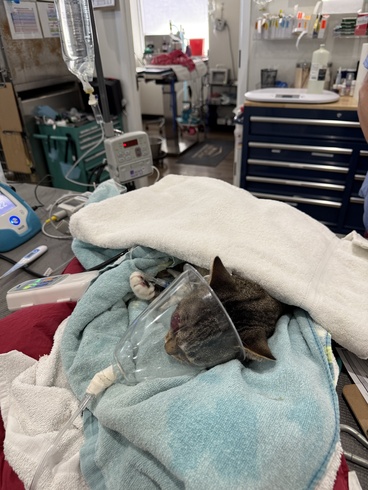 The veterinary team is doing everything possible; IV fluids, oxygen, pain control, warming support, bloodwork, X-rays, and round-the-clock monitoring. If she makes it through this critical period, she will need surgery to remove a damaged eye and continued medical care.